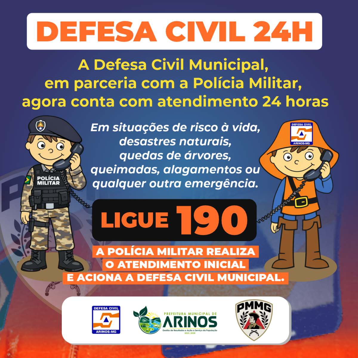 A Defesa Civil Municipal de Arinos passa a operar com atendimento 24 horas, em parceria com a Polícia Militar de Minas Gerais, reforçando o compromisso do Município com a proteção da vida, a segurança da população e a pronta resposta em situações de emergência.