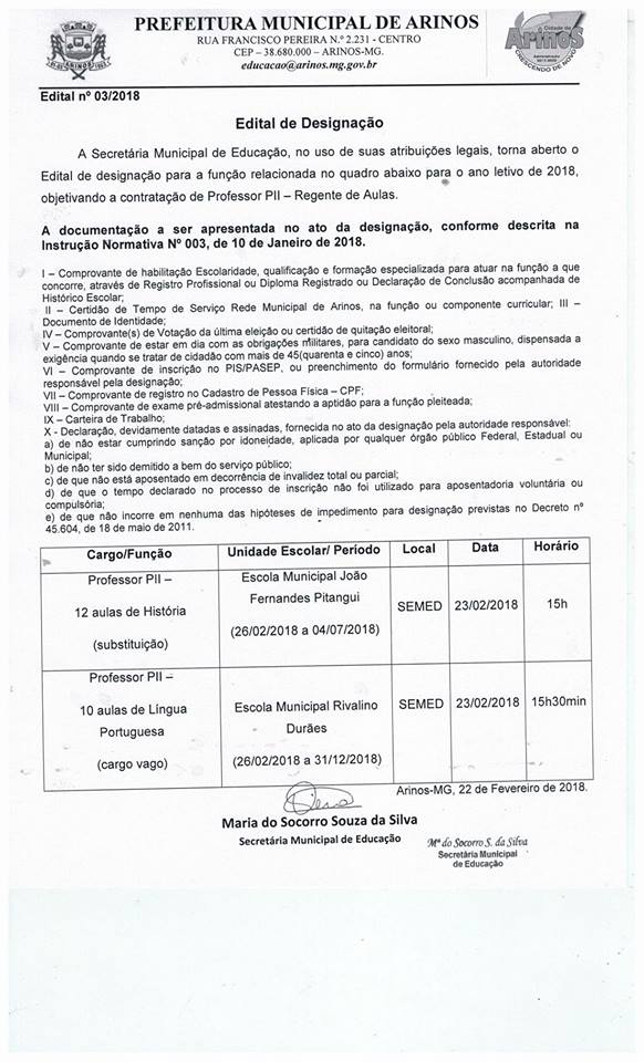 ConteudoNoticiasArinosLicitaçõesPortal da TransparênciaLeisNFS-EFundação MunicipalLinksOuvidoriaPrefeituraEditais EducaçãoLei OrgânicaPortariasDecretosPublicações de ContratosConveniosPlano plurianual do municípioLei das diretrizes orçamentárias do municípioLei orçamentária anual do municípioLicitações - Pregão PresencialLicitações - Termo AditivoLicitações - DispensaLicitações - ConcursoLicitações - ConcorrenciaLicitações - Tomada de PreçosLicitações - Carta ConviteLicitações - ResultadosLicitações - InexigibilidadeLicitações - Chamada PúblicaLicitações - LeilãoNormas Jurídicas - ContratosTermos de Colaborações das Organizações da SociedaVisite ArinosNossa CidadeDistrito de Sagarana Distrito Bom JesusSimbolosLicitações - Pregão EletrônicoAcesso Rápido TopoPublicação de Atas de Registros de PreçosCovid-19 - Dispensa de Licitações EmergenciaisPovoado de MorrinhosCovid-19Covid-19 - ReceitasCovid-19 - Processos LicitatóriosCovid-19 - DecretosCovid-19 - BoletinsCovid-19 - ContratosLicitações - Dispensa Lei 14.133Fundação Municipal - Licitações Anteriores a 2025Fundação Municipal - Licitações Credenciamento / InexigibilidadeFundação Municipal - Licitações DispensaFundação Municipal - Licitações PregaoAcesso Rápido - CidadaoAcesso Rápido - EmpresasAcesso Rápido - Servidor