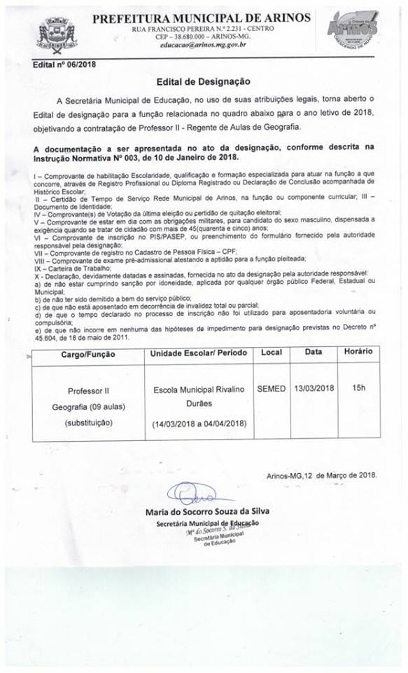 ConteudoNoticiasArinosLicitaçõesPortal da TransparênciaLeisNFS-EFundação MunicipalLinksOuvidoriaPrefeituraEditais EducaçãoLei OrgânicaPortariasDecretosPublicações de ContratosConveniosPlano plurianual do municípioLei das diretrizes orçamentárias do municípioLei orçamentária anual do municípioLicitações - Pregão PresencialLicitações - Termo AditivoLicitações - DispensaLicitações - ConcursoLicitações - ConcorrenciaLicitações - Tomada de PreçosLicitações - Carta ConviteLicitações - ResultadosLicitações - InexigibilidadeLicitações - Chamada PúblicaLicitações - LeilãoNormas Jurídicas - ContratosTermos de Colaborações das Organizações da SociedaVisite ArinosNossa CidadeDistrito de Sagarana Distrito Bom JesusSimbolosLicitações - Pregão EletrônicoAcesso Rápido TopoPublicação de Atas de Registros de PreçosCovid-19 - Dispensa de Licitações EmergenciaisPovoado de MorrinhosCovid-19Covid-19 - ReceitasCovid-19 - Processos LicitatóriosCovid-19 - DecretosCovid-19 - BoletinsCovid-19 - ContratosLicitações - Dispensa Lei 14.133Fundação Municipal - Licitações Anteriores a 2025Fundação Municipal - Licitações Credenciamento / InexigibilidadeFundação Municipal - Licitações DispensaFundação Municipal - Licitações PregaoAcesso Rápido - CidadaoAcesso Rápido - EmpresasAcesso Rápido - Servidor