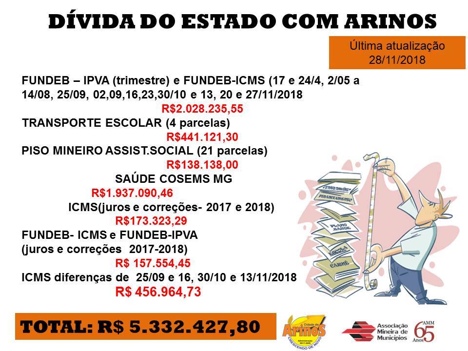 Desde que o Governo do Estado deixou de repassar verbas constitucionais devidas aos municípios como ICMS, IPVA, FUNDEB, Saúde e Assistência Social, a Prefeitura de Arinos vem se esforçando para manter seus serviços e honrar seus compromissos, com atenção especial à população.