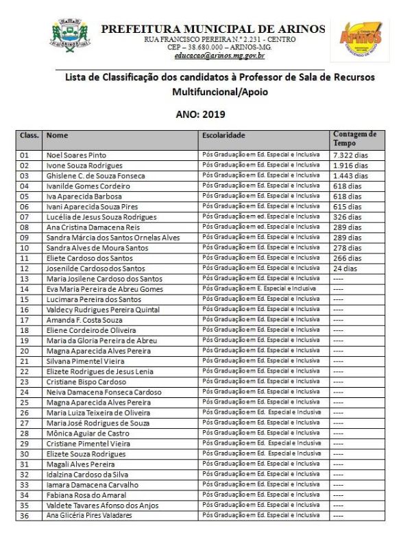 Designação 2019: Professor Sala de Recursos Multifuncional/Apoio