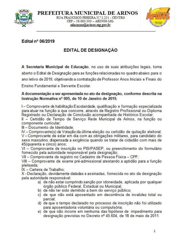 Edital de Designação n° 06/2019