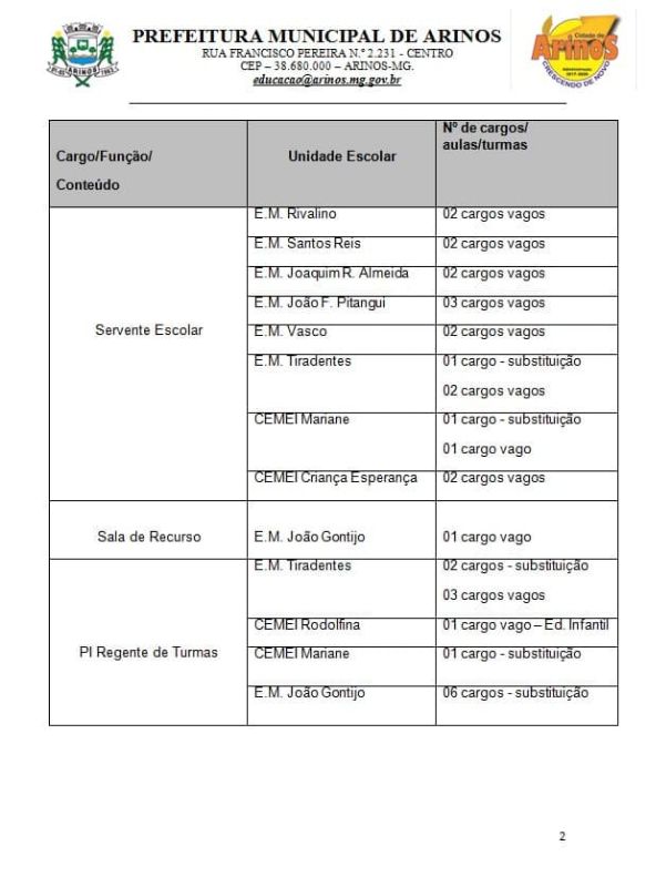 ConteudoNoticiasArinosLicitaçõesPortal da TransparênciaLeisNFS-EFundação MunicipalLinksOuvidoriaPrefeituraEditais EducaçãoLei OrgânicaPortariasDecretosPublicações de ContratosConveniosPlano plurianual do municípioLei das diretrizes orçamentárias do municípioLei orçamentária anual do municípioLicitações - Pregão PresencialLicitações - Termo AditivoLicitações - DispensaLicitações - ConcursoLicitações - ConcorrenciaLicitações - Tomada de PreçosLicitações - Carta ConviteLicitações - ResultadosLicitações - InexigibilidadeLicitações - Chamada PúblicaLicitações - LeilãoNormas Jurídicas - ContratosTermos de Colaborações das Organizações da SociedaVisite ArinosNossa CidadeDistrito de Sagarana Distrito Bom JesusSimbolosLicitações - Pregão EletrônicoAcesso Rápido TopoPublicação de Atas de Registros de PreçosCovid-19 - Dispensa de Licitações EmergenciaisPovoado de MorrinhosCovid-19Covid-19 - ReceitasCovid-19 - Processos LicitatóriosCovid-19 - DecretosCovid-19 - BoletinsCovid-19 - ContratosLicitações - Dispensa Lei 14.133Fundação Municipal - Licitações Anteriores a 2025Fundação Municipal - Licitações Credenciamento / InexigibilidadeFundação Municipal - Licitações DispensaFundação Municipal - Licitações PregaoAcesso Rápido - CidadaoAcesso Rápido - EmpresasAcesso Rápido - Servidor