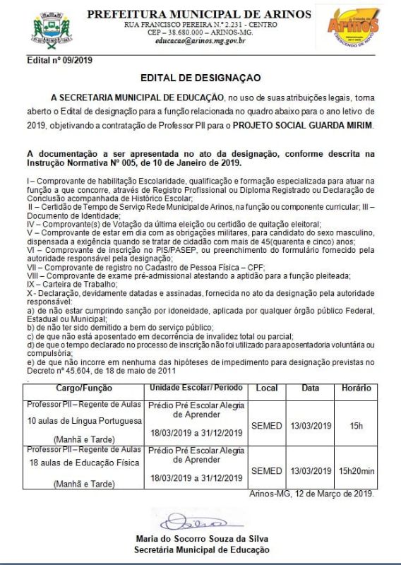 ConteudoNoticiasArinosLicitaçõesPortal da TransparênciaLeisNFS-EFundação MunicipalLinksOuvidoriaPrefeituraEditais EducaçãoLei OrgânicaPortariasDecretosPublicações de ContratosConveniosPlano plurianual do municípioLei das diretrizes orçamentárias do municípioLei orçamentária anual do municípioLicitações - Pregão PresencialLicitações - Termo AditivoLicitações - DispensaLicitações - ConcursoLicitações - ConcorrenciaLicitações - Tomada de PreçosLicitações - Carta ConviteLicitações - ResultadosLicitações - InexigibilidadeLicitações - Chamada PúblicaLicitações - LeilãoNormas Jurídicas - ContratosTermos de Colaborações das Organizações da SociedaVisite ArinosNossa CidadeDistrito de Sagarana Distrito Bom JesusSimbolosLicitações - Pregão EletrônicoAcesso Rápido TopoPublicação de Atas de Registros de PreçosCovid-19 - Dispensa de Licitações EmergenciaisPovoado de MorrinhosCovid-19Covid-19 - ReceitasCovid-19 - Processos LicitatóriosCovid-19 - DecretosCovid-19 - BoletinsCovid-19 - ContratosLicitações - Dispensa Lei 14.133Fundação Municipal - Licitações Anteriores a 2025Fundação Municipal - Licitações Credenciamento / InexigibilidadeFundação Municipal - Licitações DispensaFundação Municipal - Licitações PregaoAcesso Rápido - CidadaoAcesso Rápido - EmpresasAcesso Rápido - Servidor