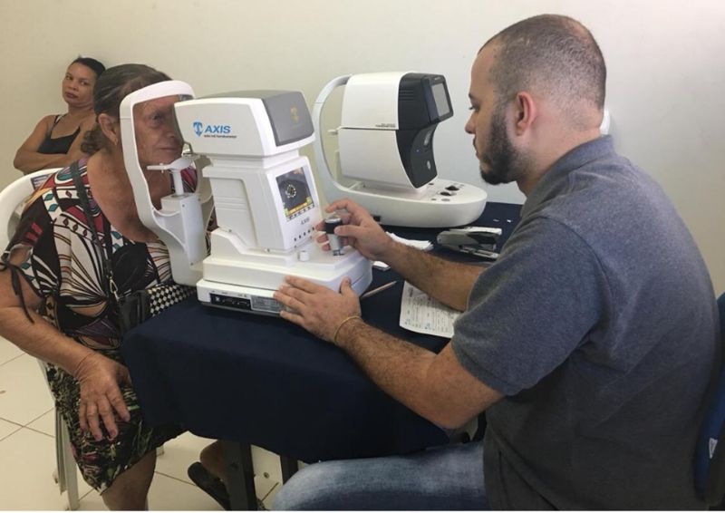 Durante os atendimentos os profissionais realizaram exames de vista, teste do olhinho, refração completa ou medida de grau, exames dos movimentos oculares, exames da parte anterior dos olhos, exames de fundo de olho e pressão intraocular.