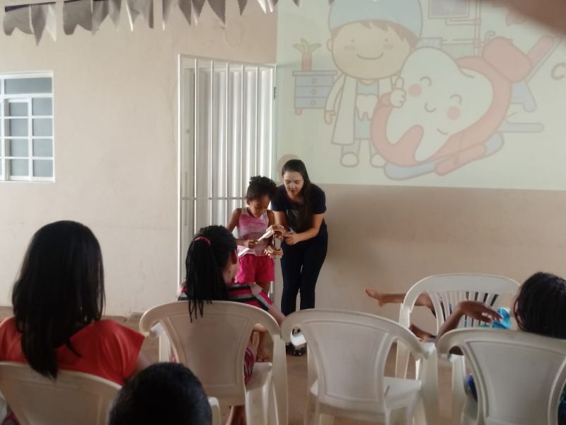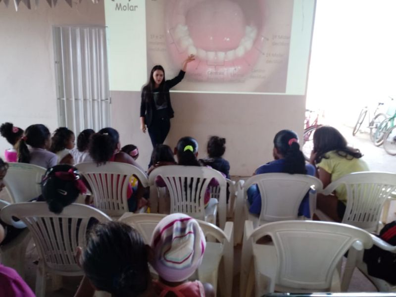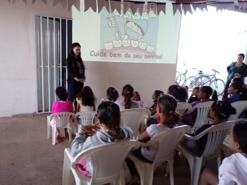 A ação teve como intuito desenvolver um trabalho de qualidade em saúde bucal, levando conhecimentos com relação os tipos de dentes e suas funções, doenças bucais, como ocorrem e como prevenir, diminuição do consumo de doces, importância do flúor; e técnica correta da escovação.