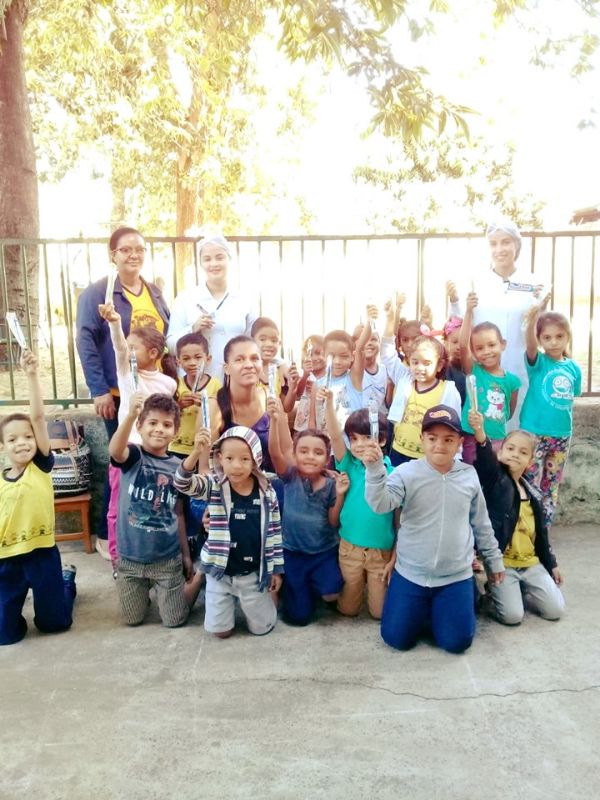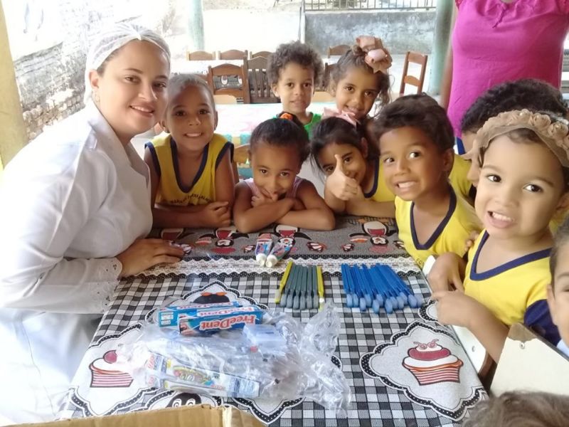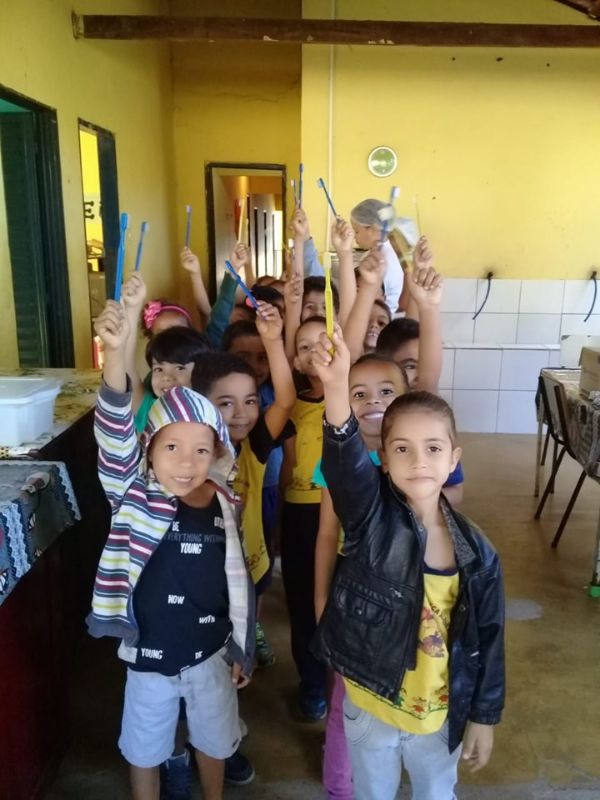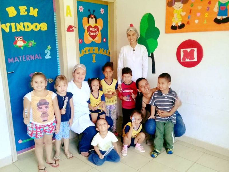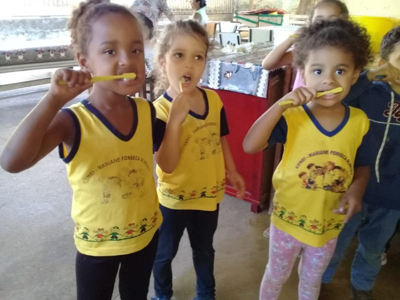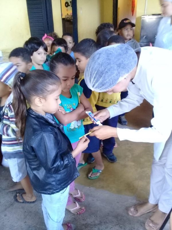 Essa ação tem como intuito oferecer aos anos iniciais, orientações em saúde bucal de qualidade, estimulando o habito de higiene bucal e o uso do fio dental. Cada criança do Cemei Mariane recebeu uma escova de dentes e creme dental.
