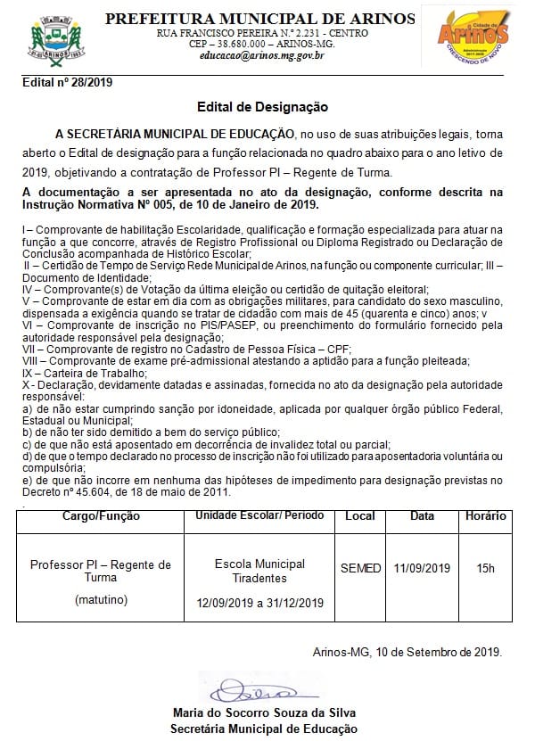 Edital Designação: 28/2019