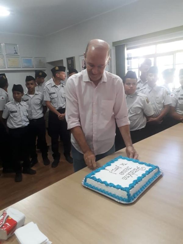 Ao final os alunos da Guarda Mirim fizeram apresentação com a fanfarra e canção em frente a prefeitura e depois foi servido o bolo de aniversário no gabinete executivo.