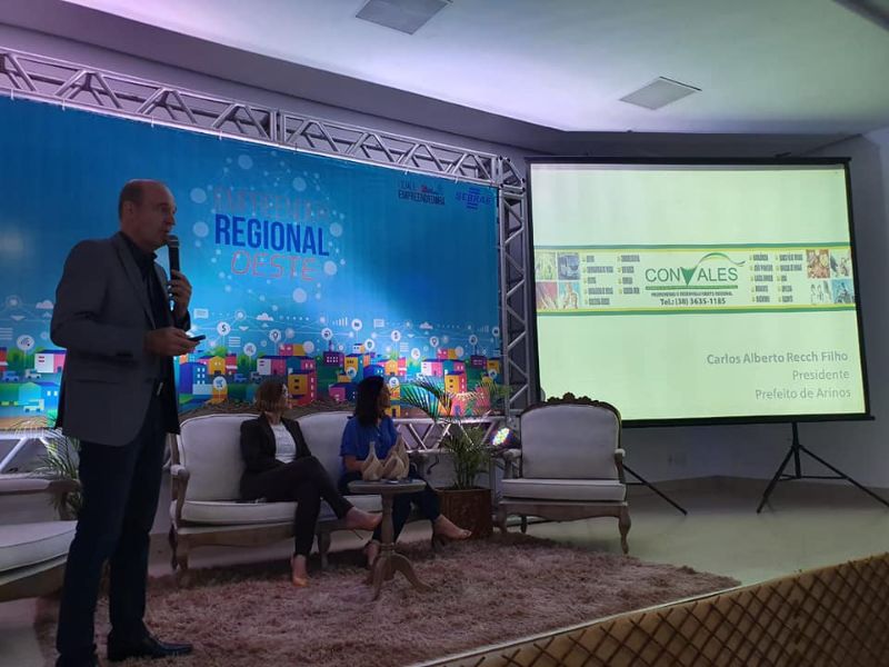 Nesta quarta-feira (4), o Prefeito de Arinos e também Presidente do Convales, Carlos Alberto Recch Filho, ministrou palestra em Barreiras, BA, cujo tema “Caso de Sucesso Selo de Inspeção Consorciado – Noroeste de Minas”. Esse evento faz parte do programa Empreendedor Regional do Sebrae.