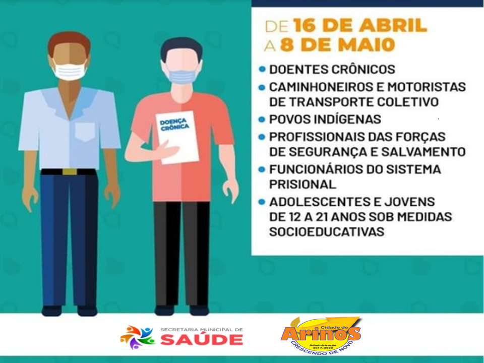 Os grupos prioritários vão ser incluídos gradualmente na campanha. O cronograma da 2ª. etapa segue abaixo: