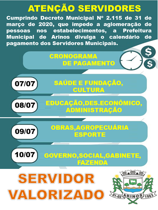 Cronograma de pagamento dos Servidores Municipais