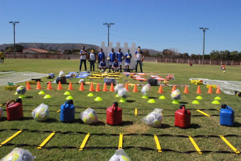Com a aprovação do projeto social, a Escolinha Municipal de Futebol adquiriu diversos materiais esportivos, tais como: 60 camisas de futebol, 60 shorts, 75 coletes, 30 bolas, 10 apitos, 5 cartões de arbitragem, 5 bandeirinhas, 10 bombas, 2 pares de redes, 10 cones, 10 pratos, 2 escadas de piso, 6 garrafões de 5 litros, 1 barreira móvel, 3 baldes bolsa massagem e 20 pares de chuteiras.
