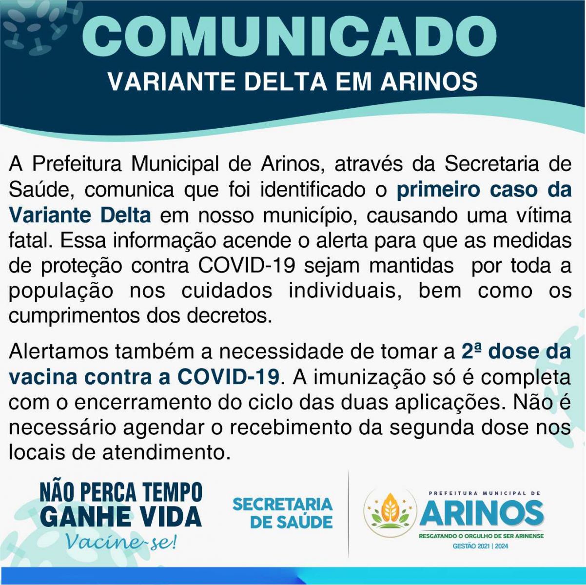 Publicado em 31/08/2021Comunicado - Variante Delta da COVID-19 em Arinos-MG
